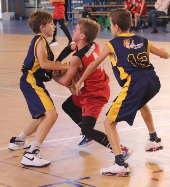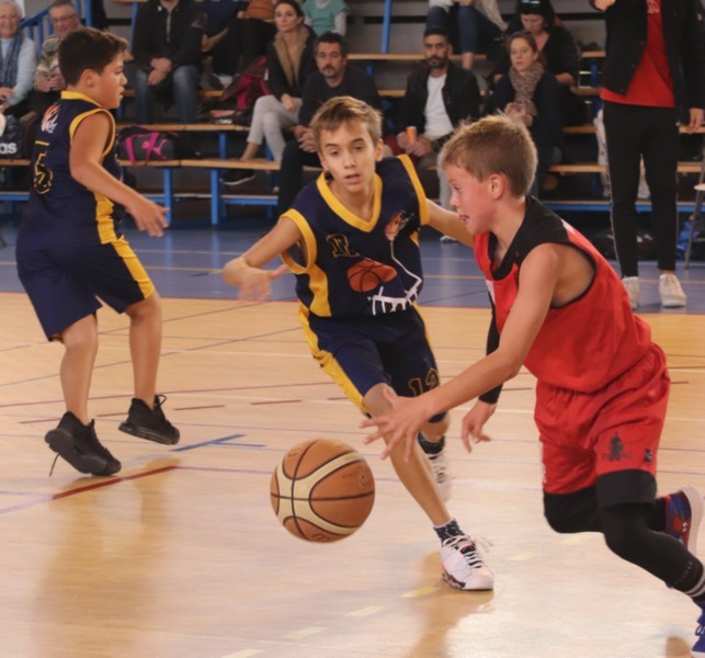 Un coup derrière , un coup devant au score nos benjamins ont perdu de très peu cette belle rencontre . Du beau jeu de part et d'autre du parquet , le public s'est régalé.